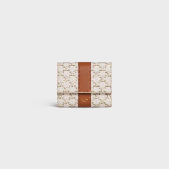スモール トリフォールドウォレット / トリオンフキャンバス&ラムスキン ホワイト / タン